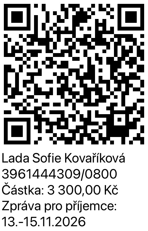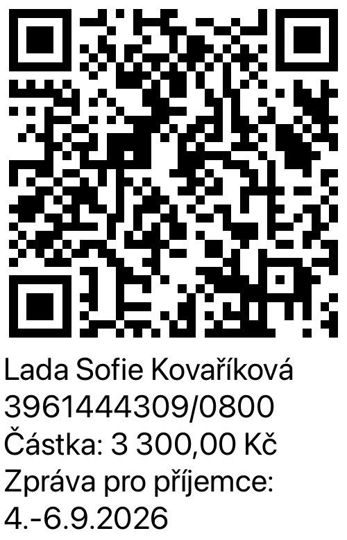 Pokud uhradíte celou platbu za seminář nejpozději do 10.7.2026, máte cenu 3.300,- Kč. Platí pouze pro soukromé, nikoliv firemní účely ).